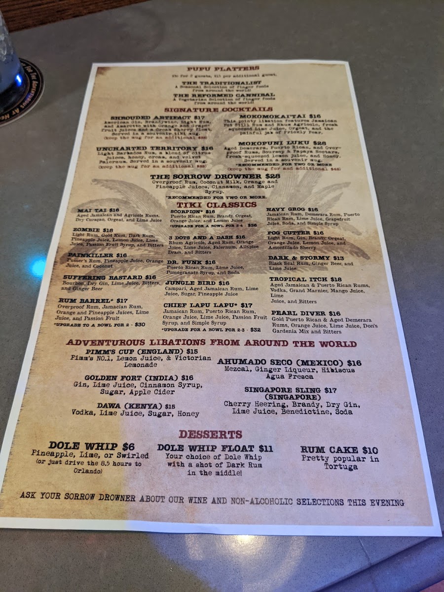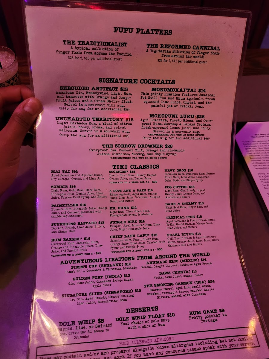 Welcome to The Sorrow Drowner, a captivating tiki bar nestled in the heart of Wilmington, NC. This unique establishment not only offers a rich selection of Prohibition-era cocktails but also a delightful array of signature drinks that are sure to enchant any palate. Highlights include the Mokupuni Luku and The Sorrow Drowner, both priced at $30, alongside classic choices like the Old Fashioned and Sidecar.